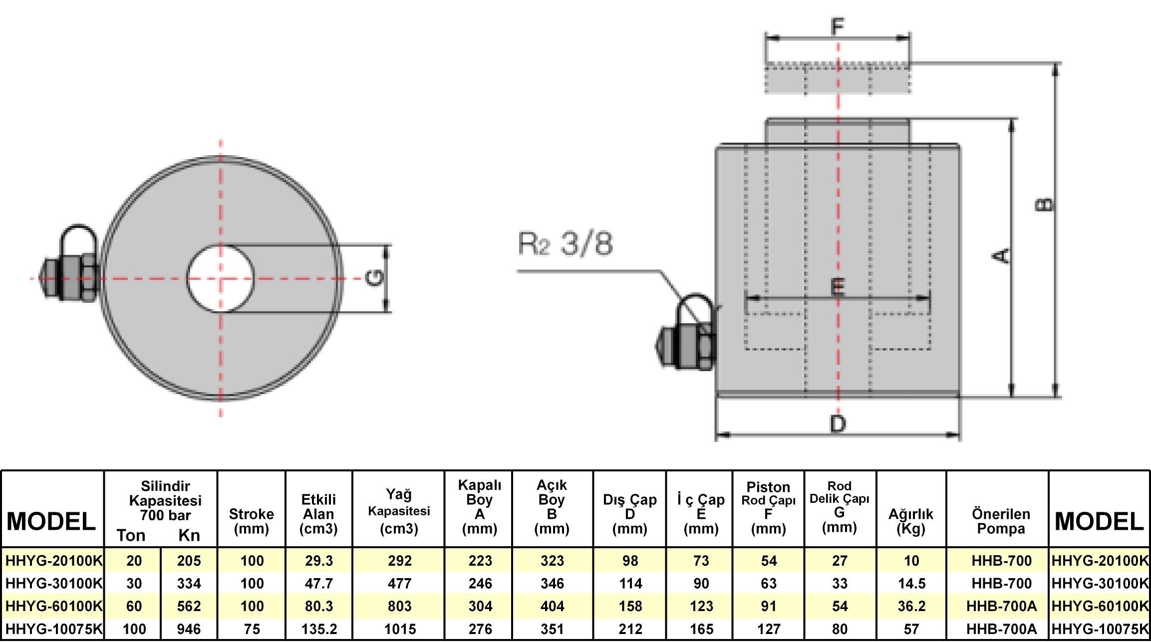 60 TON 100MM STROK HİDROLİK SİLİNDİR HHYG-60100K NIVEUS